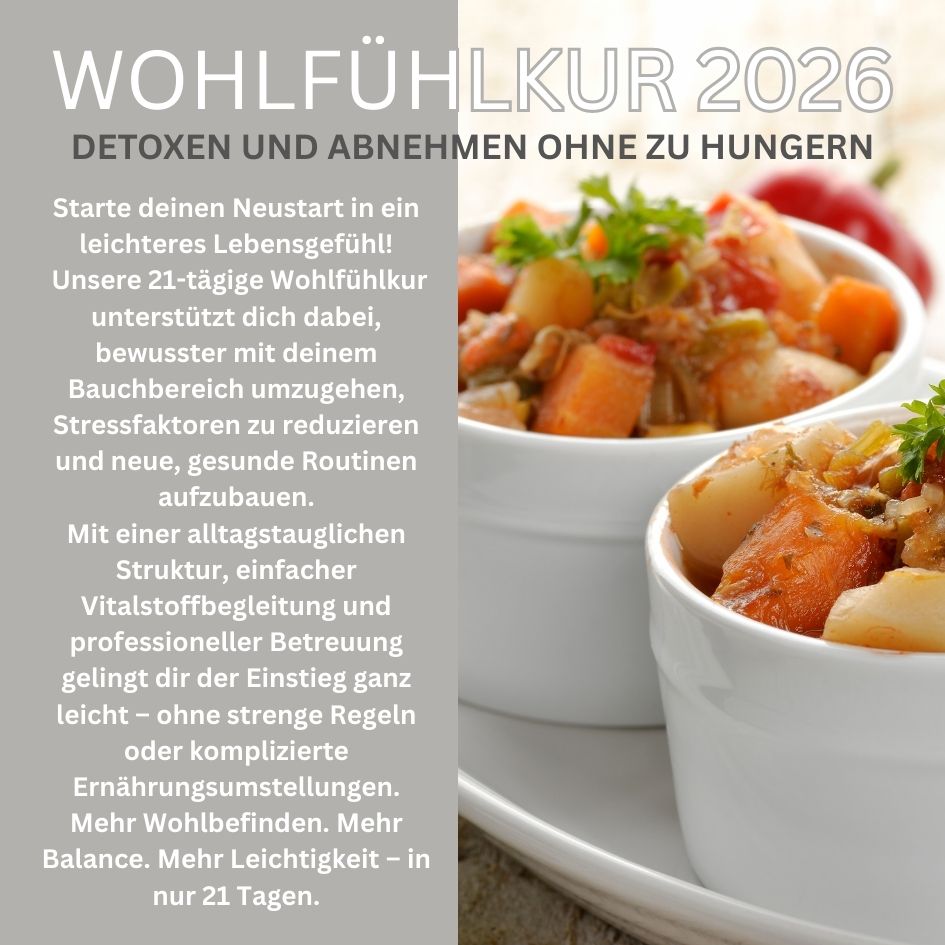 Die 21-tägige Wohlfühlkur ist eine sanfte, alltagstaugliche Möglichkeit, dein Körpergefühl zu verbessern, bewusster mit Bauchfett und Stressfaktoren umzugehen und neue, nachhaltige Gewohnheiten zu entwickeln. Mit Vitalstoffunterstützung und professioneller Begleitung wird der Weg leichter – und du kannst erleben, wie gut es tut, drei Wochen lang ganz bewusst etwas für dich zu tun.